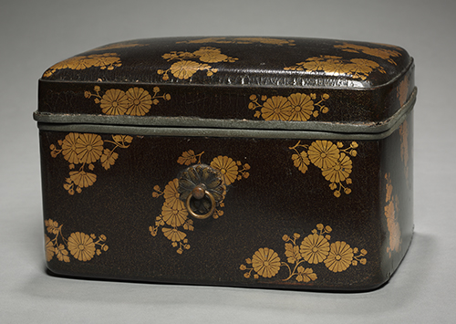 | Japan, Kamakura Period, Box with chrysanthemum decoration, 1300–1333. Lacquered wood with gold leaf, 6 15/16" x 10 3/4" x 8 1/4” (17.6 x 27.4 x 21 cm). © 2019 Cleveland Museum of Art. (CL-282) |