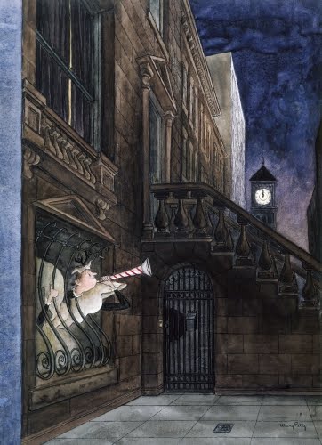 | Mary Petty (1899–1976, United States), The New Year, original cover illustration for The New Yorker magazine, published 31 December, 1949. Watercolor, ink on paper, 17" x 12 3/8" (43.2 x 31.5 cm). Image © 2016 The Museum of Modern Art, New York. (MOMA-P1770) |