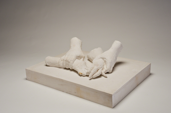 Initially partial casts of people's bodies, Segal began making true fragments of only individual elements of the human body such as hands, arms and even shoulders. These works, such as Physician with Arthritis Patient, are even more intimate details of everyday people, preserved forever in plaster. Physician is particularly powerfully human and compelling compared to ancient Greek sculpture, in that the subject is the hands of an "imperfect" human with arthritis. There is more than just a little irony in Segal's process of using medical gauze bandages as the basis for a work that involves the healing touch of a doctor. Unlike his anonymous cast figures of people involved in everyday activities of his work starting in the 1960s, Physician with Arthritis Patient is a powerfully empathetic work that documents a condition many, many people suffer from.