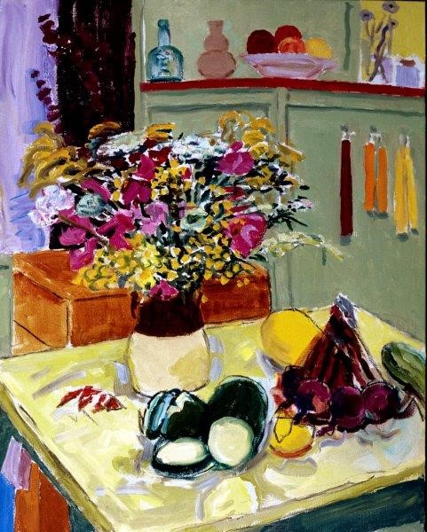 Although there is a French essence to Blaine’s work in the brilliant colors grounded in Impressionism through Fauvism, her work is unmistakably American in the energetic brushwork reflective of Abstract Expressionist action painting. Because of her academic training in Richmond, she respected the traditions of structured composition. Her work recalls not only Abstract Expressionist brushwork and Fauve color, but also French Impressionist interest in light, and a respect for the interplay of shapes seen in many of the Post-Impressionists.